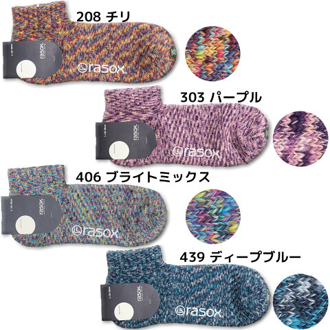 カラー ・208 チリ ・303 パープル ・406 ブライトミックス ・439 ディープ・ブルー ・527 シーモス ・706 ミディアムグレー ・207 オレンジミックス ・305 パープルミックス ・309 フジミックス ・411 カプリブルー ・507 チャイブグリーン商品説明 rasox(ラソックス)は、「直角を基本に運動」する足の形を考えて直立時のカタチに合わせて編み込んだ L字型一体成型編みくつ下を展開する日本のブランドです。
