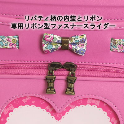 リバティ花柄のテープ使いが斬新、リボンの先にはキュートなハートが人気のデザイン。